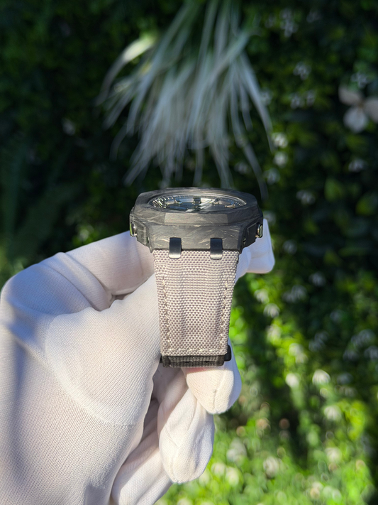 Montre CasiOak Custom – Full Silver Carbon Fiber - Nylon Canvas Velcro Strap - Mod G-Shock GA2100