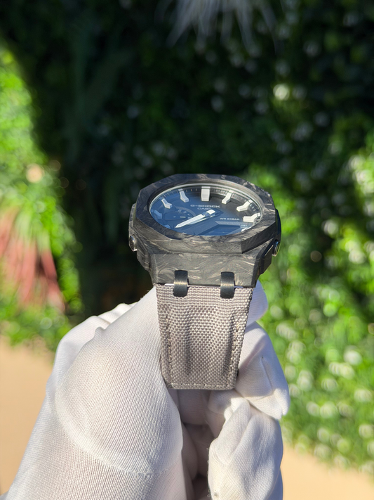 Montre CasiOak Custom – Blue Bluetooth Carbon Fiber - Nylon Canvas Velcro Strap - Mod G-Shock GAB2100