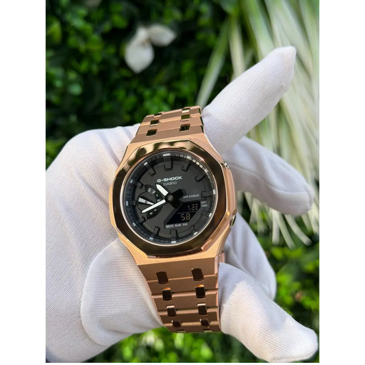CasiOak Custom Watch – Rose Gold Mirror Polish – Mod G-Shock GA2100