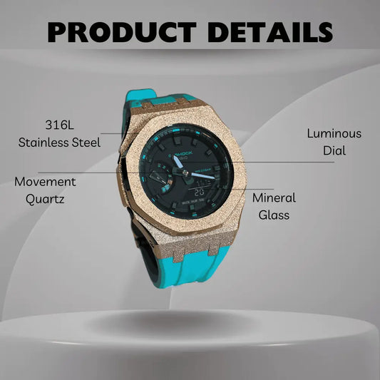 CasiOak Custom Watch – Rose Gold Blue Frosted - Mod G-Shock GMAS2100