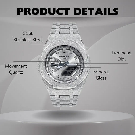 CasiOak Custom Watch – Silver White Frosted - Mod G-Shock GA2100