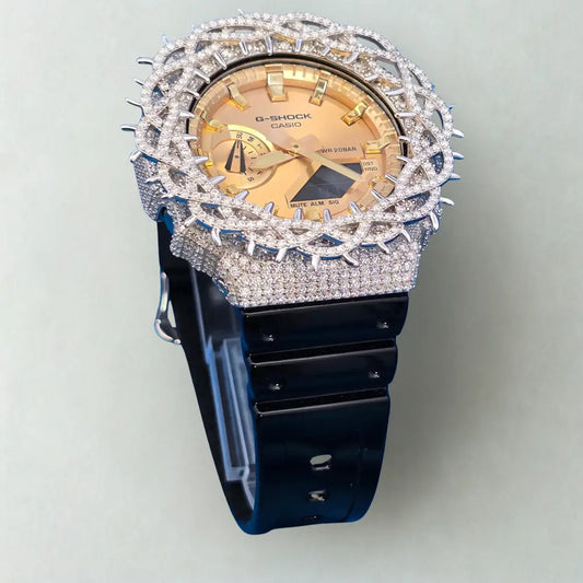 G-Shock Custom Hip Hop Watch – Moissanite 925 Silver IcedOut Thorn Black Gold - Luxury Mod GA2100
